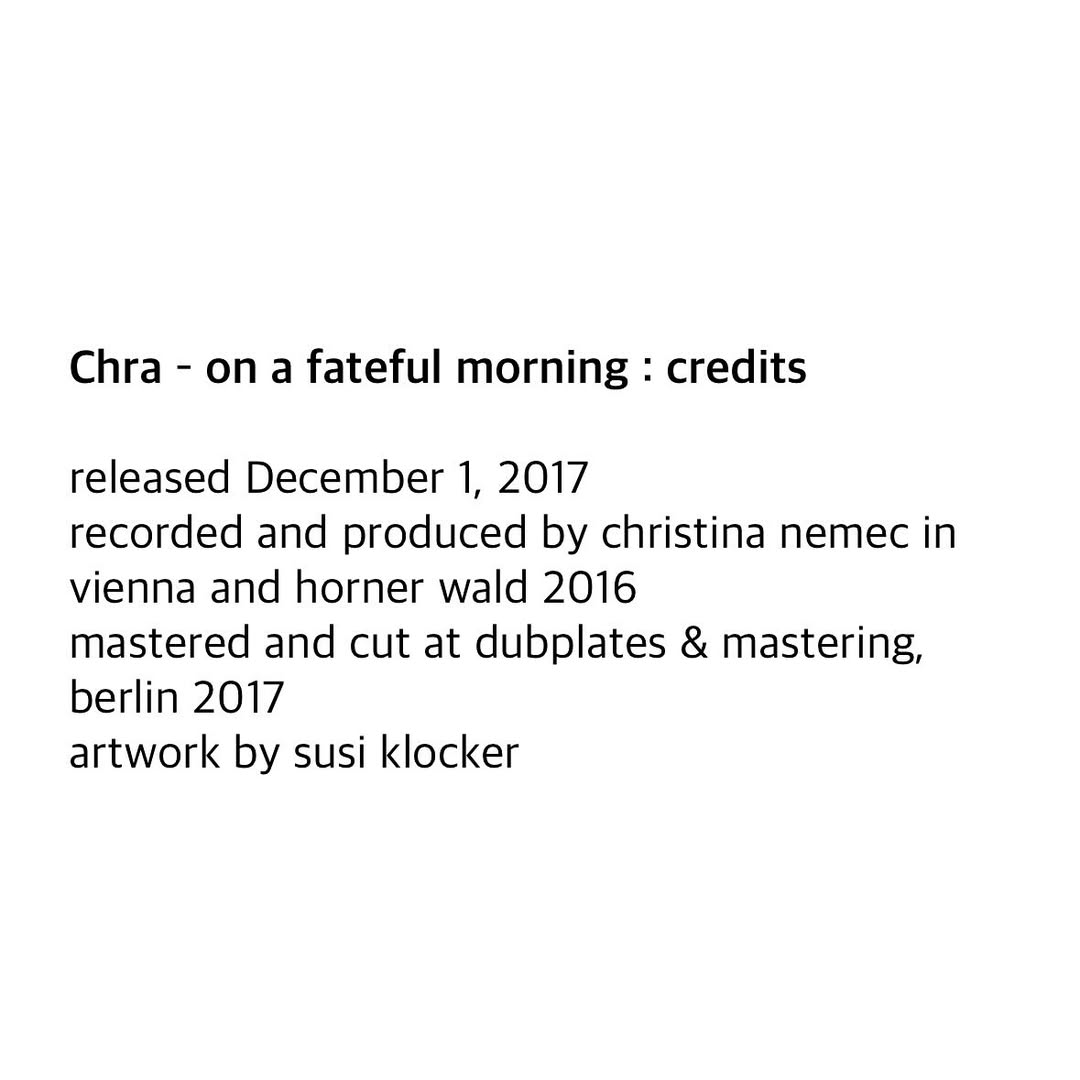 Chra is the project of Christina Nemec, a Vienna-based sound artist. She is regarded as more than a creator of music, but as a sonic architect who sketches a psychogeographical map along the border between the inner and outer worlds.
